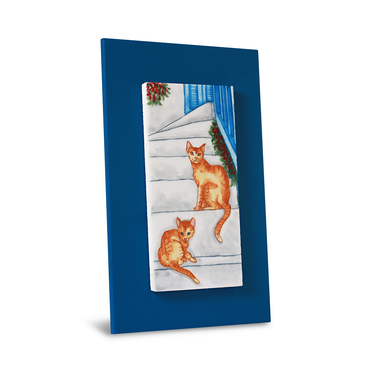 Hand-painted white Greek marble, inspired by the landscapes, colors, and light of the Cyclades. Each piece is unique and signed by the artist, accompanied by a certificate of authenticity. The marble is mounted on marine plywood, and you can choose from 4 suggested wood colors to perfectly complement your space and personal taste. It captures the serenity and purity of the Aegean — a true piece of Greece for every space.